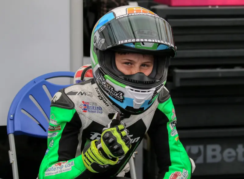 Last year he won the British Talent Cup at age 14 - the first ever rookie to win, with 6 victories and 7 second place finishes!