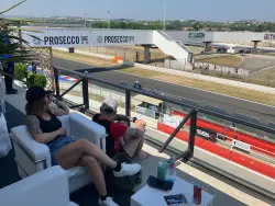 Saturday the SBK VIP was open - and we were treated to an amazing terrace over the main street with panoramic views. The racing got underway, and we were treated to a sensational SSP300 race with our sponsored rider Carter Thompson from Australia entering the final lap in 9th place, and pushing through the pack to take a monumental victory!